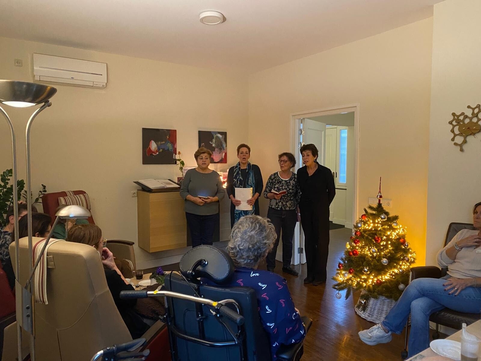 We zingen liedjes in allerlei talen, van meditatieve liederen tot dialect en spirituele gezangen. Ook kerstliederen behoren tot ons repertoire. Onze meerstemmige zang is erop gericht om een gevoel van rust en troost te creƫren, en een muzikale ondersteuning te bieden aan zowel degenen die we bezoeken als hun naasten.